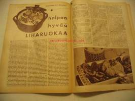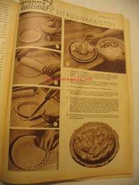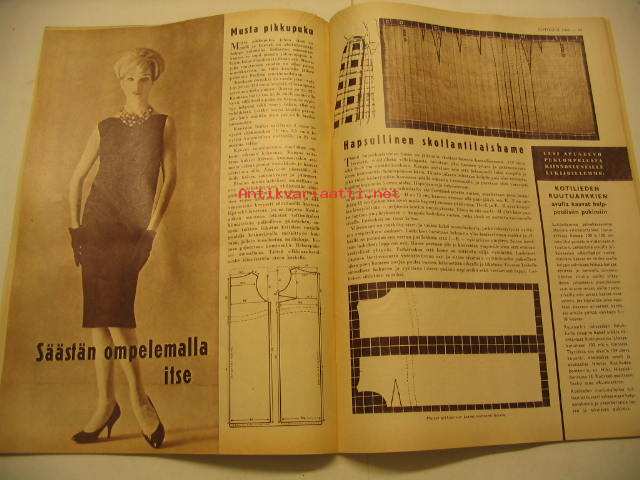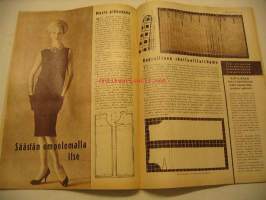 Kotiliesi 1959 nr 2, musta pikkupuku, onko teillä turkki, sitruunapaistos, takasivu värimainos Upo astianpesukone