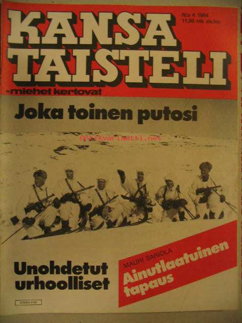 Kansa taisteli 1984 nr 4 ( Mauri Sariola: Ainutlaatuinen tapaus Mannerheim-ristien historiassa, Aimo Raassina. Lentorykmentti 4 Suursaaren yllä.