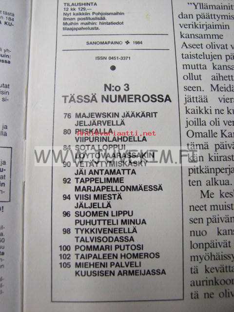 Kansa taisteli 1984 nr 3 (Kirjoittajina: Onni Palaste, Niilo Löppönen, Eino Mustamo, Lauri Ala-Jääski, Helmer Sjöman. Kuva: Timo Johannes (Jukka) Puus