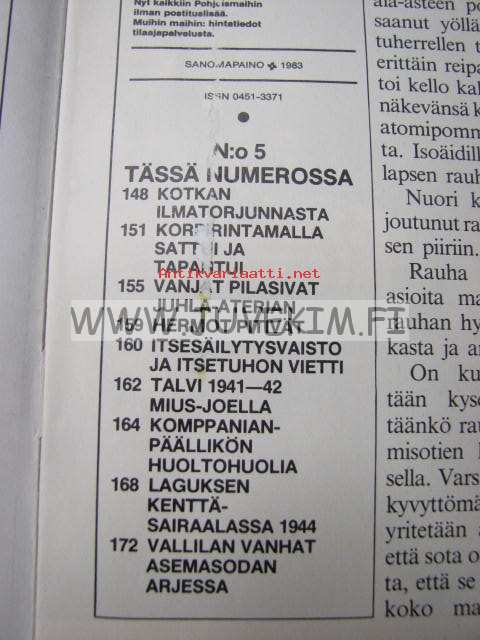 Kansa taisteli 1983 nr 5, Lagus kenttäsairaala 1944, John Hongelin: Kotkan puolustuksen muistomerkki, Juustila pommitettu, Vieljärvi