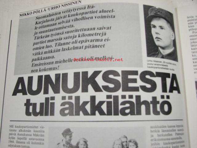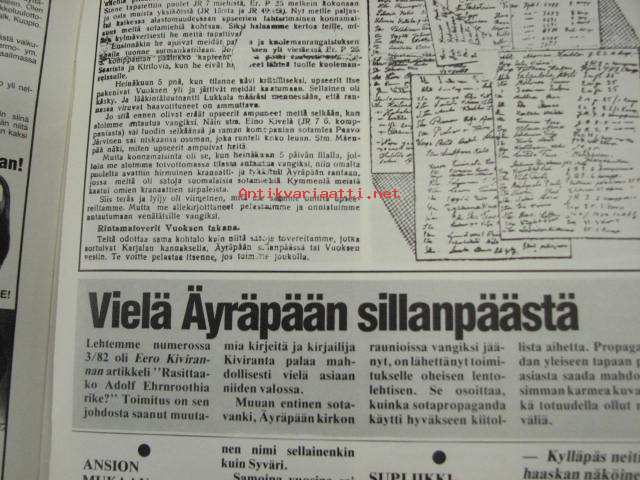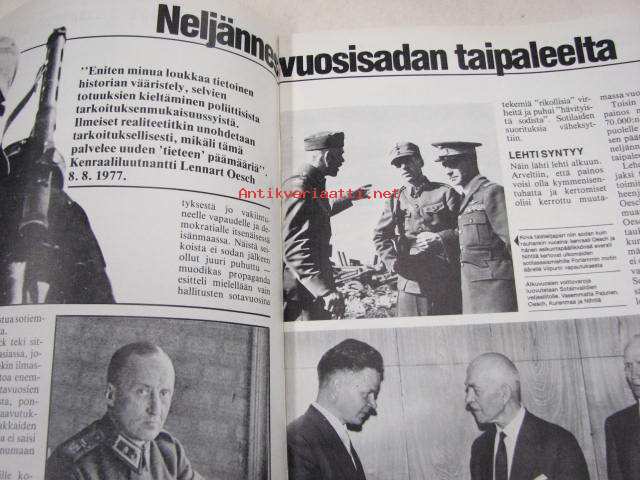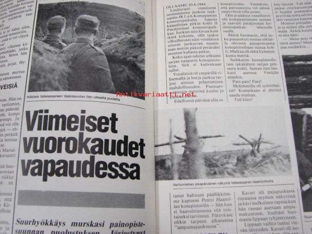 Kansa taisteli 1982 nr 6 - 25 vuotta - juhlanumero , Hitler hengenvaarassa, Aunuksesta tuli äkkilähtö Urho Nissinen muistelee, Sakari Alapuro: taistelin itsemurhalentäjän kanssaSakari Simelius: JR 4 Syvärillä
