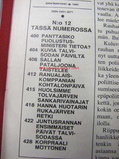 Kansa taisteli 1980 nr 12 Suomussalmi 20.12.1939 ranualaiskomppanian kohtalonpäivä. Kuvia Värtsilästä. Onni Palaste: Hanna Huotarin Rukajärven retki. Sallan