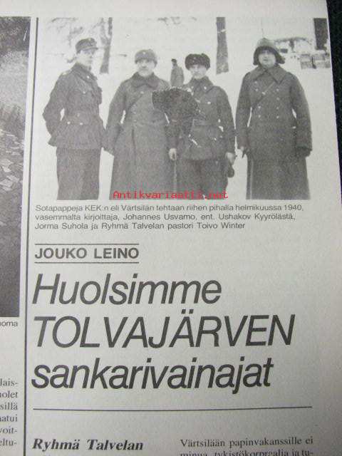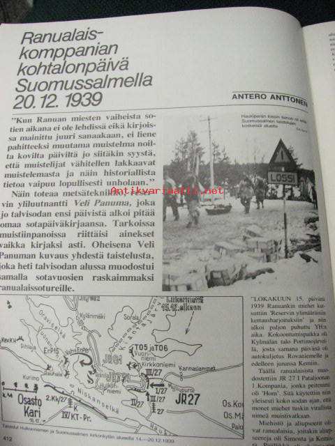 Kansa taisteli 1980 nr 12 Suomussalmi 20.12.1939 ranualaiskomppanian kohtalonpäivä. Kuvia Värtsilästä. Onni Palaste: Hanna Huotarin Rukajärven retki. Sallan pataljoona taistelee, kuvassa mm. komentaja majuri V Roininen.