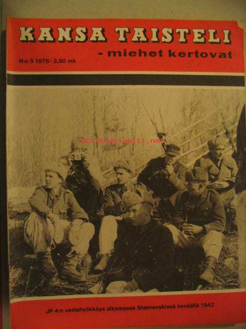 Kansa taisteli 1976 nr 5, Lauri Harvila: Suomen armeijan käyttämät aseet 1918-1945, konekivääri, Pertjärven mottitaistelu Syvärillä huhtikuu 1942 sekä kartta. In memorian -artikkeli lentomestari Oiva Tuominen. sankarivainajien käs