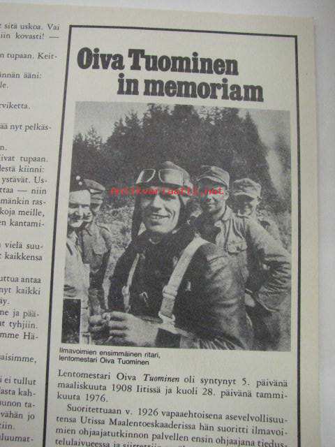 Mm artikkeli Pertjärven mottitaistelu Syvärillä huhtikuu 1942 sekä kartta. In memorian -artikkeli kuvineen lentomestari Oiva Tuominen.