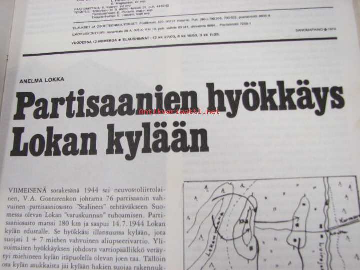 Kansa Taisteli 1974 nr 7, Kohti Korpiselkää ( 2-JR 23) kuva mm Viipurin asemasta sekä taistelukartta Ilmomantsi - Tohmajärvi. Partisaanien hyökkäys Lokan kylään.