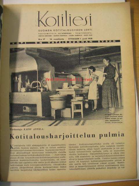 Kotiliesi 1938 nr 17 Syyskuu Kansikuva Martta Wendelin. Postilaitos 300 vuotta 2.6.1938. Kuvassa Helsingin postitalo sekä sisäkuva asiakaspalvelusta.