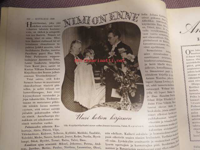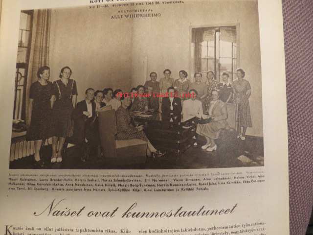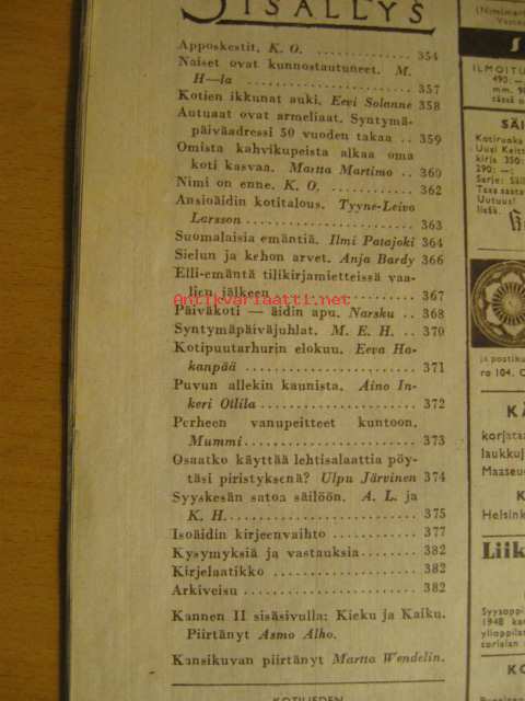 Kotiliesi 1948 nr 15-16 (kansikuva Martta Wendelin), Suomalaisia emäntiä: Ilmi Patajoki Jämsästä, puvun allekin kaunista, päiväkoti äidin apu, omista kahvikupeista alkaa oma koti kasvaa