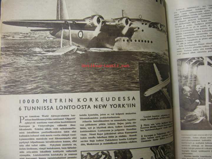 Koko sivun kuva Mannerheim ja Suomalaisen Tyttönormaalilyseon uudet ylioppilaat. Professori Matti Leppo , kuva ja puolen sivun artikkeli. Harjavallan kuparitehdas. Astronomi G.E.Hale ja kaukoputki. Lentoyhtiö Pan American World Airways, kuvia ja artikkeli lentoliikenteestä.