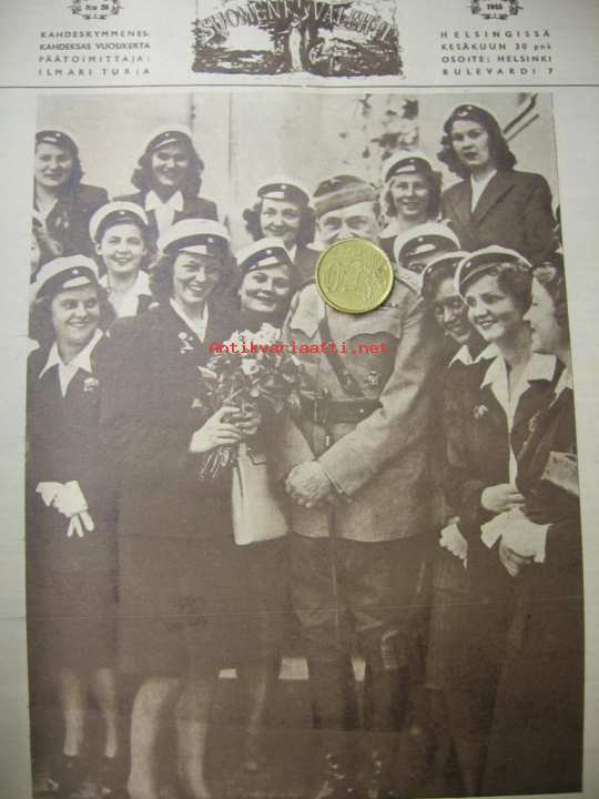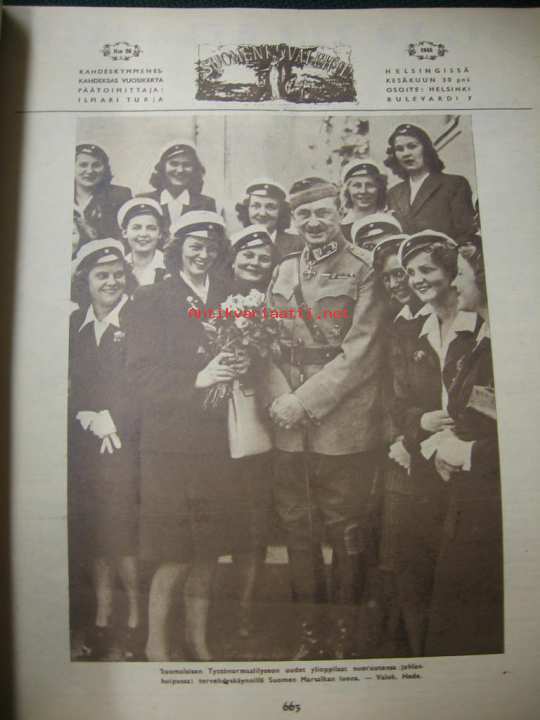 Suomen Kuvalehti 1945 nr 26 30.6.1945 ilm 30.6.1945 kesän 1945 ajankuvaa. Kuva Mannerheim ja tyttölyseon ylioppilaat. Harjavallan kuparitehdas.