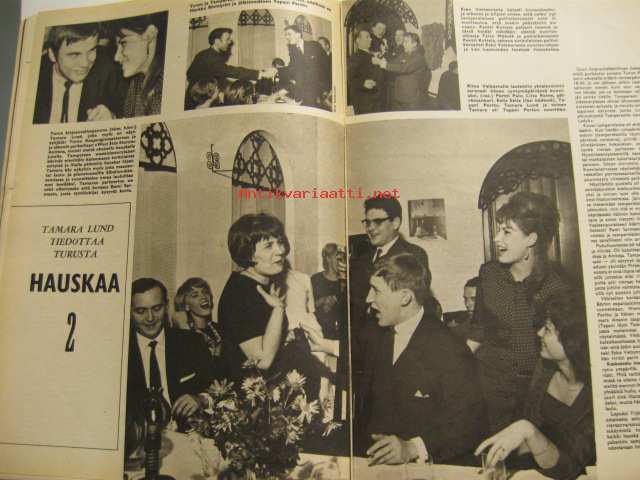 Elokuva-Aitta 1964 nr 23, Esko Salminen, Tamara Lund tiedottaa Turusta - seurapiiritapahtuma vuonna 1964 - kuvassa mukana myös Rami Sarmasto, Pirkko Mannola, ym.