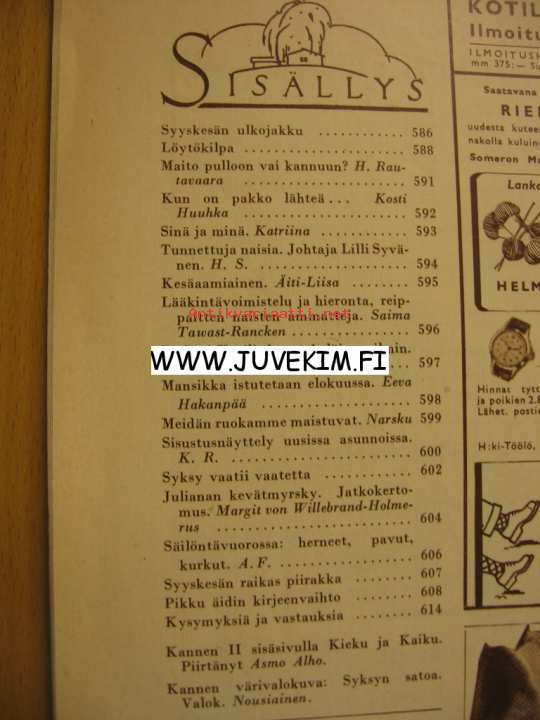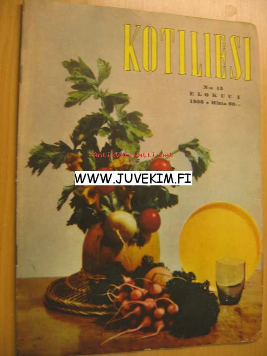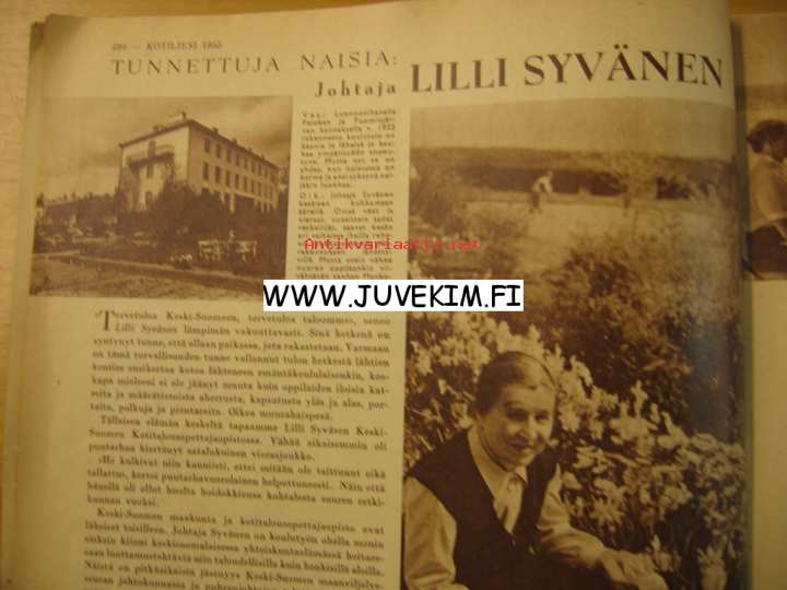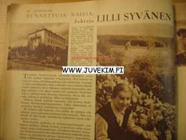 Kotiliesi 1955 nr 15, elokuu ajankuvaa ja mainoksia Tunnettuja naisia: Lilli Syvänen. Tapiolan sisustusnäyttely, artikkeli ja 9 kuvaa.
