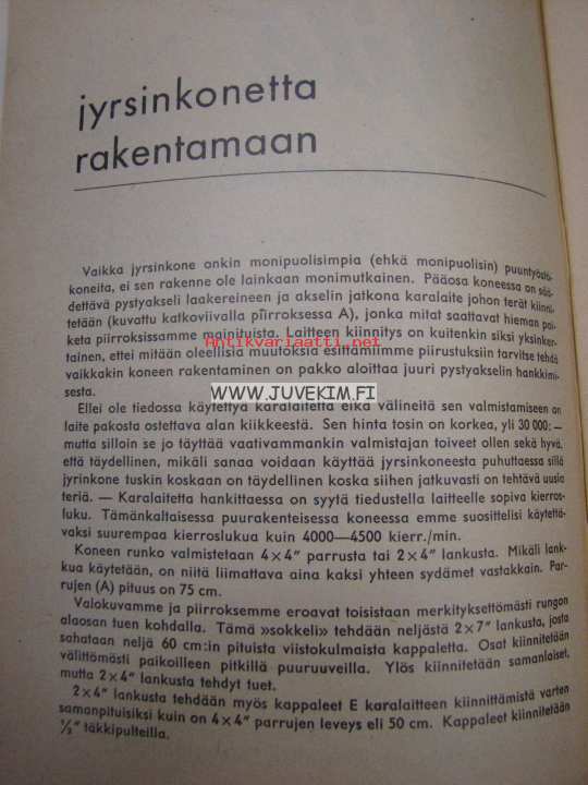 Suomen hobby, 1955sis mm jyrsinkone, lintulauta, täkintikkausteline, pikajuotin ja taikatemppuväline