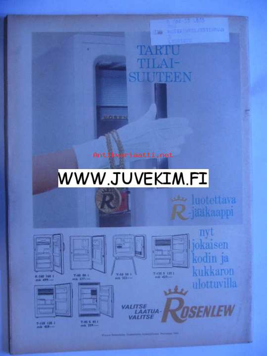 | Saatavilla | 1 kpl | | Julkaisuvuosi | 1963 | | Kunto | K3 | | Sidonta/painoasu | Lehti | | Kielet | Suomi |