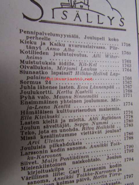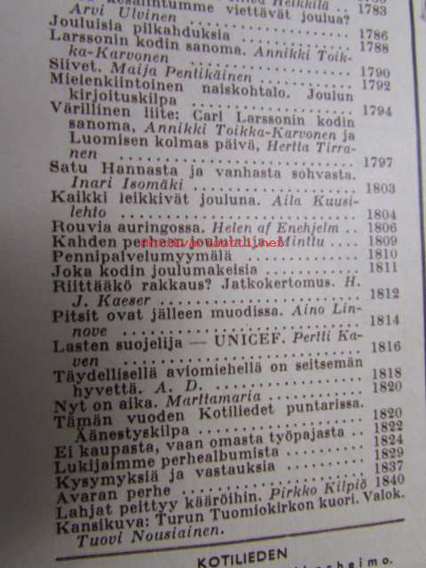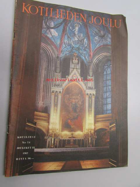 Kotiliesi 1962 nr 24, joulukuu II, Kansikuva Turun Tuomikirkko alttaritaulu, Kieku ja Kaiku avaruuslaivassa, Ella Kivikoski, Kieku ja Kaiku avaruuslaivassa, Hämäläisen kulttuuriseudun maisemia - Ella Kivikoski kertoo kotipitäjästään Tammelasta, Ei kaupasta vaan omasta työpajasta - joulun kultatähti, Carl Larssonin kodista värivalokuvia, ym.