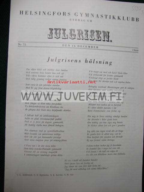 Julgrisen Helsingfors Gymnastikklub 1960 -joululehti