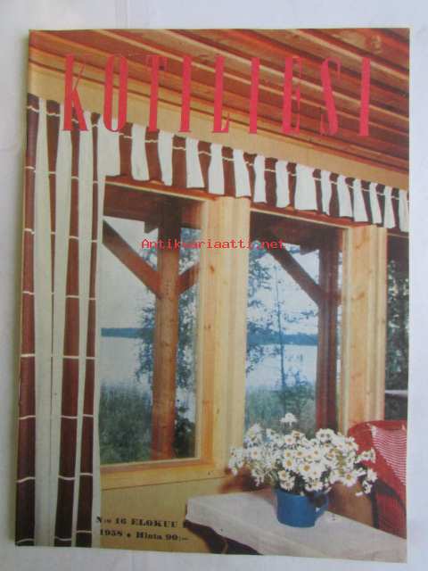 Kotiliesi 1958 nr 16 elokuu , Kirsti ja Sakari Laine Huhmarin tila Nurmijärvellä, mitä tie tuo? Nivankylä Kuhmon perukoilla, Uusia talouden apukeinoja, Metsiemme herkullisimmat ja myrkyllisimmät sienet, Sairauden varjosta virkistäytymään, Keskin-inen luottamus on yhteistyön perusta, Koko perheen yhteistyö, Sorminäppäryydestä omaan suunnitteluun.