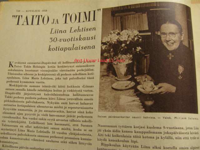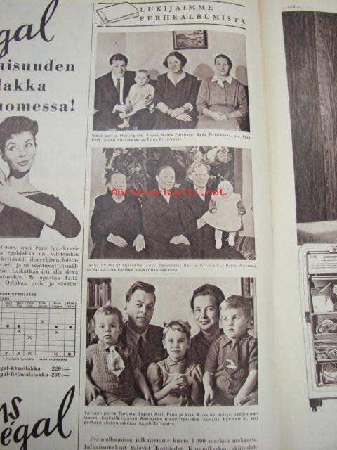 Kotiliesi 1958 nr 13 (Perhekuvissa 4 polvea: Hulda Forsberg - Taina Pirttikoski. Siiri Tervanen Bertta Kiviniemi Ritva ja Varpu-Liisa Aittasalo. Perhe