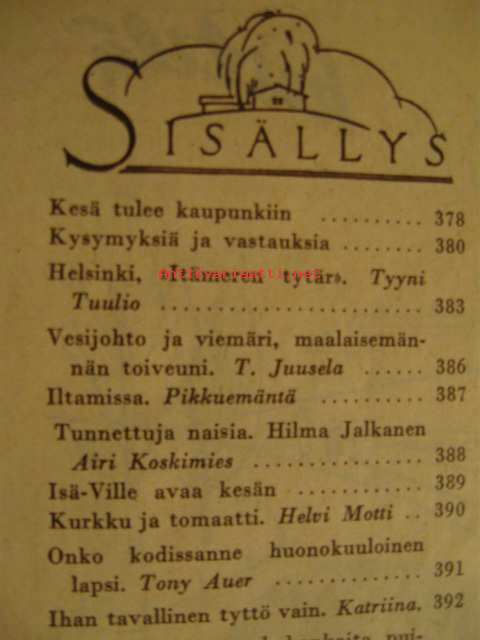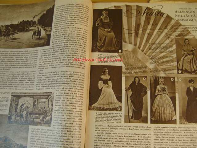 Kotiliesi 1950 nr 11 -mm. Artikkeli ja kuvia: Hilma Jalkanen. Tyyni Tuulion artikkeli: Helsinki, Itämeren tytär, artikkelissa myös kuvia naisten vaatetuksesta