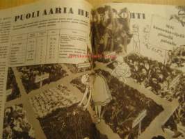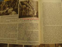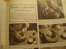 Kotiliesi 1950 nr 8, paras pesukone?, koti pitää kiinni ohjista - G. von Weissenbergin kotona, leipomisen tekniikkaa, Marja leipoo keikauskaakun, Sorja