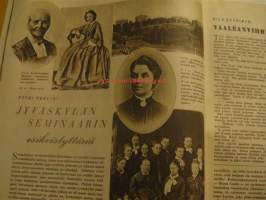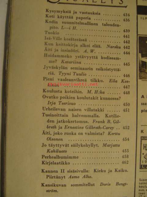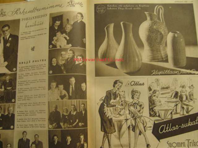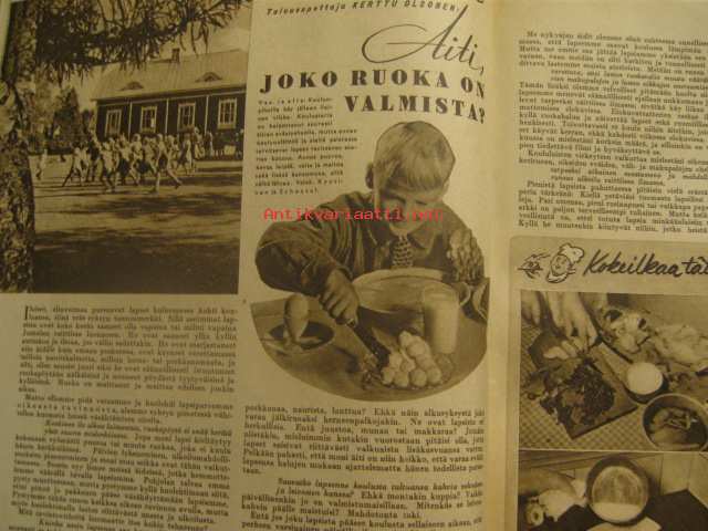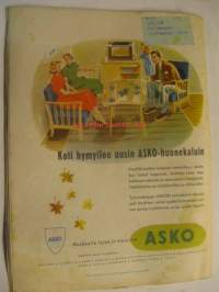 Kotiliesi 1949 nr 17 Syyskuu . TVuoden 1949 ajankuvaa, mainoksia ( mm Kupittaan Savi) , muotia ja ruoka-ohjeita. Piirretty nelivärimainos Kahvikulta. Takasivulla piirretty värimainos Asko -huonekaluista. Hääkuvassa Aune Aro ja Eero Valtimo , Oulunkylä. neljö sukupolvea kuvassa mm. Matti Luoranen , Mäntyharju , jälkipolvineen.
