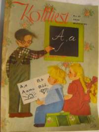 Kotiliesi 1949 nr 17 Syyskuu . TVuoden 1949 ajankuvaa, mainoksia ( mm Kupittaan Savi) , muotia ja ruoka-ohjeita. Piirretty nelivärimainos Kahvikulta. Takasivulla