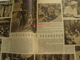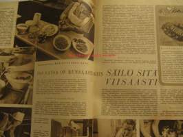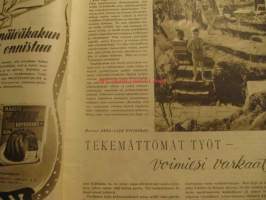 Kotiliesi 1949 nr 16, Elokuu . Emäntä Enne Kuuliala esitellään. Partiolaisten leiritoiminnasta runsas kuvasarja. Takakannessa piirretty värimainos Paulig