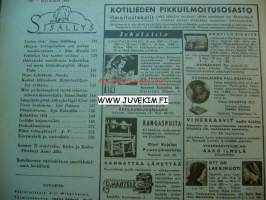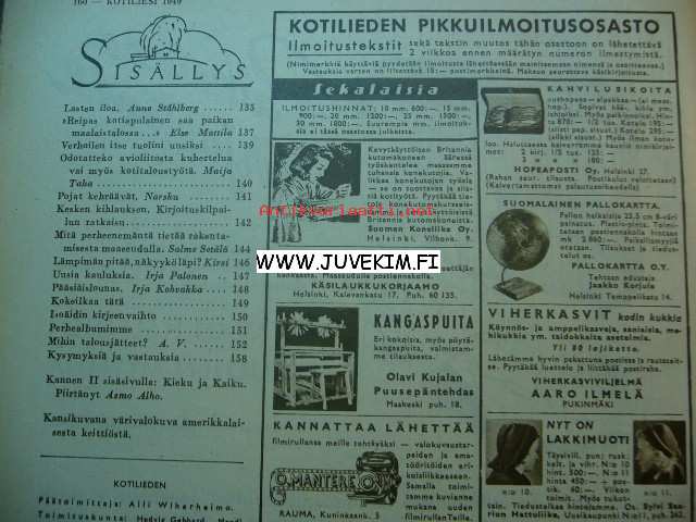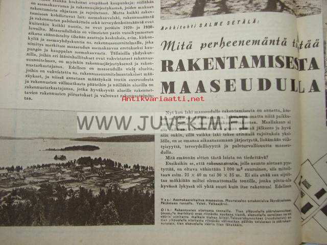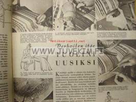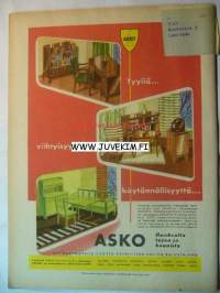 Kotiliesi 1949 nr 6 (Askon värimainos takasivulla, 1949. Muuratsalon omakotialue ilmakuvassa, 1949. Neljä sukupolvea -kuvia.Tuolin verhoilua.