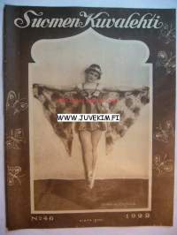 Suomen Kuvalehti 1922 nr 46 Kannessa Tyyne Wuorisola. Takakannessa piirretty mainoskuva Korpivaara & Halla 1922. Onnittelukuvisssa mm. Kultahää 26.10.1922 A.H. ja Heleena Snygg . Emäntä Iida Rantti 60 v. Antti Kauppi 70 v.