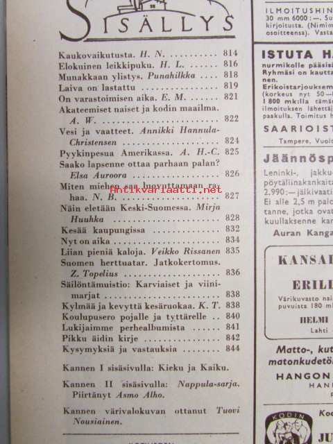 | Saatavilla | 4 kpl | | Julkaisuvuosi | 1959 | | Sivuja | 72 | | Kunto | K4 | | Sidonta/painoasu | Lehti | | Kielet | Suomi |