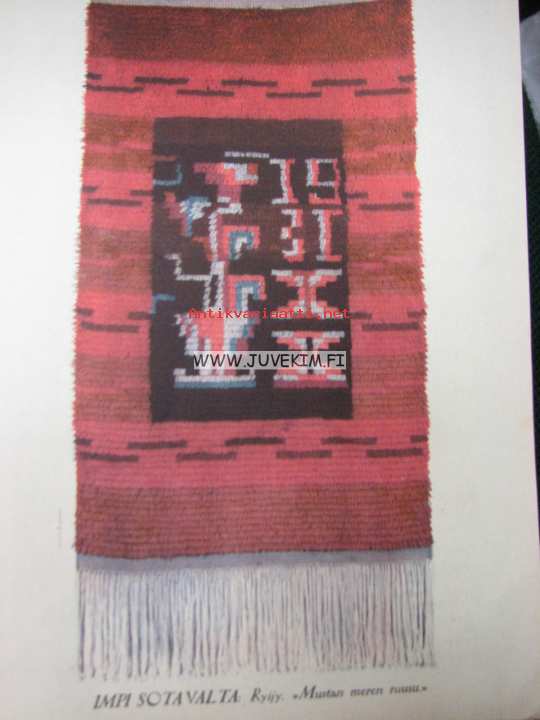 Kotiliesi 1932 nr 16 (kansi Martta Wendelin ) Elokuu 1932. Värikuvassa ryijy Mustan meren ruusu, suunn. Impi Sotavalta. Suomen Kotiteollisuusliiton näyttely
