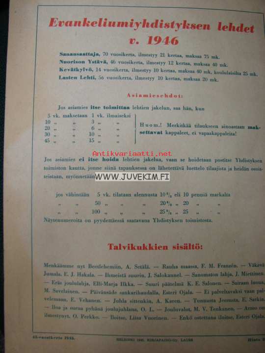 Talvikukkia - Evankelinen Joululehti 1945
