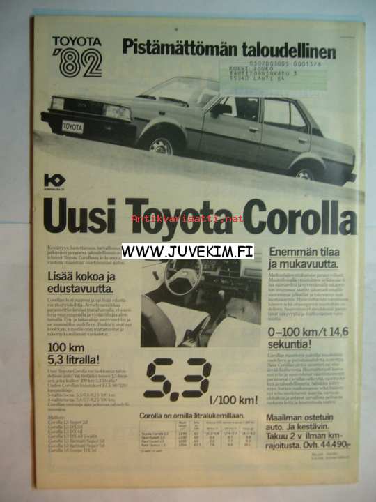 | Saatavilla | 2 kpl | | Julkaisuvuosi | 1982 | | Sivuja | 54 | | Kunto | K4 | | Sidonta/painoasu | Lehti | | Kielet | Suomi |