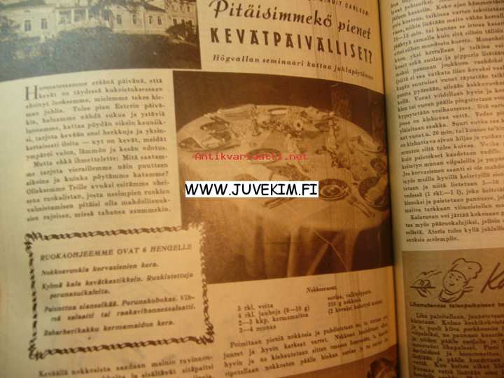 Kotiliesi 1947 nr 9 Sisältää vastakkain istuttavan keinun teko-ohjeen. Ajankuvaa vuodelta 1947. Takannessa ravintoympyrä vuoden eli 1947 ruokasuositukset