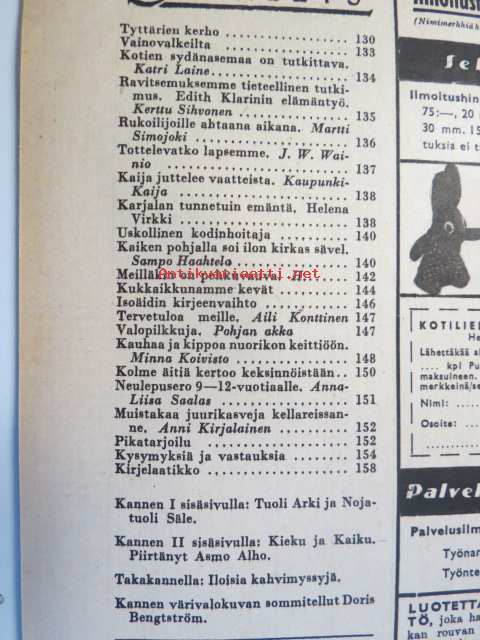 Kotiliesi 1944 nr 5, 1.3.1944, Tuolimallit Arki ja Säle, Muistakaa juurikasveja kellareissanne, Karjalan tunnetuin emäntä Helena Virkki - Lehtola - Vuoksela