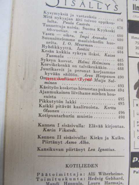 Kotiliesi 1942 nr 17, syyskuu. Aiheita: korvikekenkä on talvikenkäkin, tunnettuja naisia Suoma Kyykoski, suunnittelemme maalaiskodin huoneita.