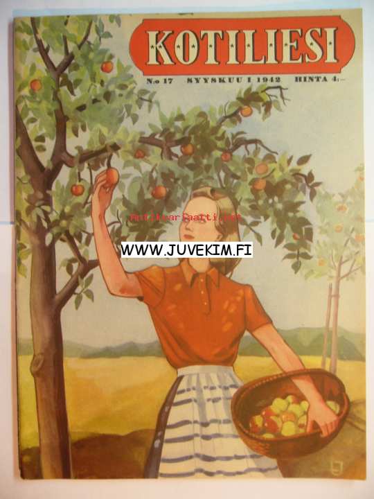 Kotiliesi 1942 nr 17, syyskuu. Aiheita: korvikekenkä on talvikenkäkin, tunnettuja naisia Suoma Kyykoski, suunnittelemme maalaiskodin huoneita. Sota-ajan ruokaohjeita mm. hapankaali.