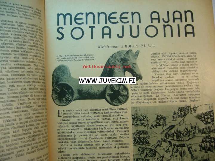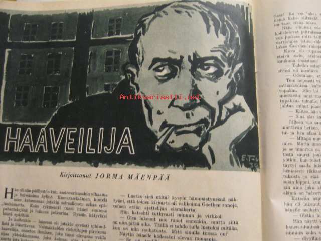 | Saatavilla | 2 kpl | | Julkaisuvuosi | 1939 | | Sivuja | 32 | | Kunto | K3 | | Sidonta/painoasu | Lehti | | Kielet | Suomi |