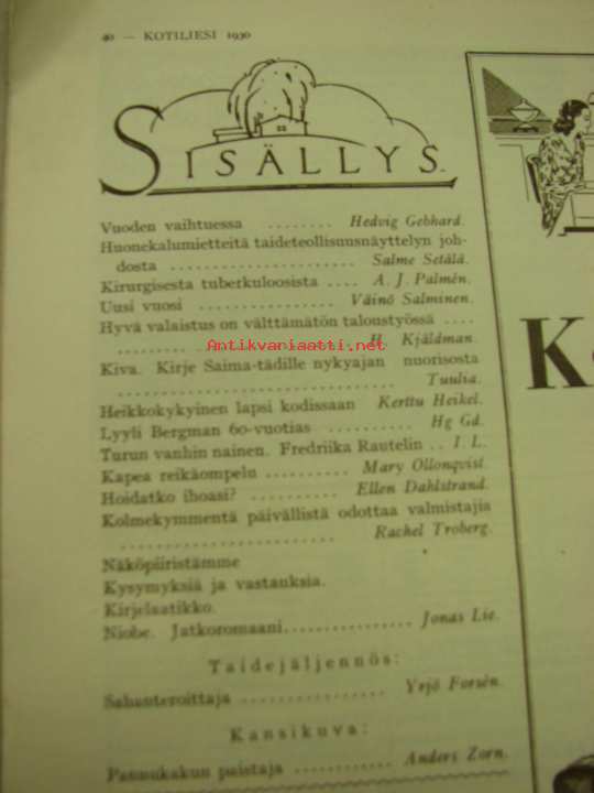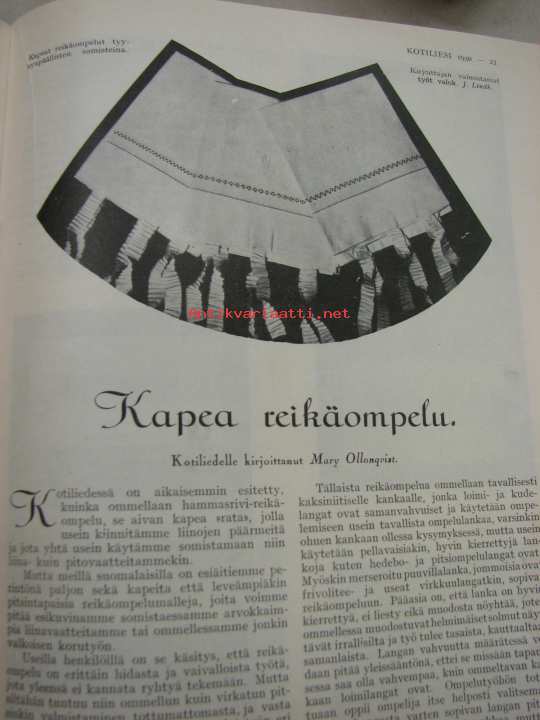 Kotiliesi 1930 nr 10. Toukokuu 1930. Takakannessa Finlayson -värimainos. Ford ja Chevrolet -mainokset. Reseptejä, neulemalleja ja ompeluohjeita 1930-luvulta.