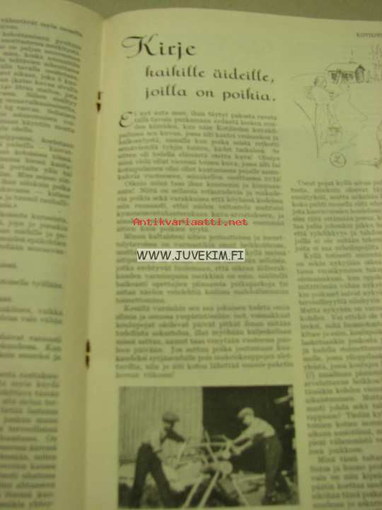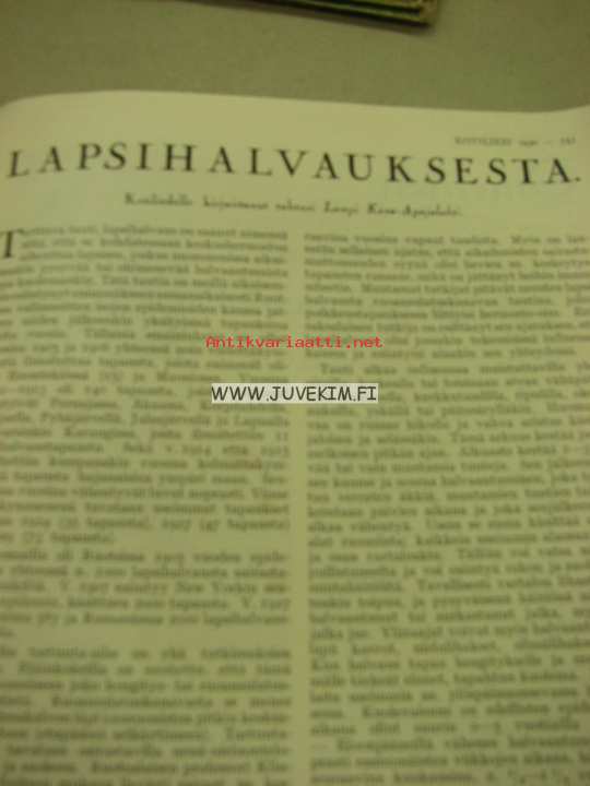 | Saatavilla | 2 kpl | | Julkaisuvuosi | 1930 | | Kunto | K2 | | Sidonta/painoasu | Lehti | | Kielet | Suomi |