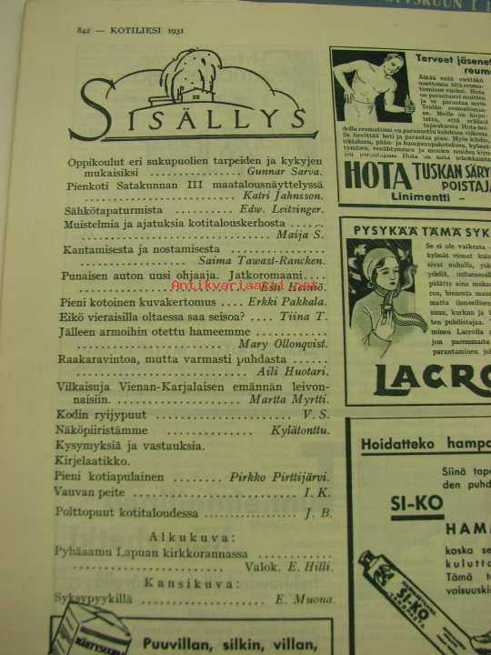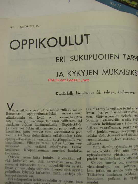 Mm. artikkeli Vienan-Karjalan leivonnaista. Pienkoti satakunnan III maatalousnäyttelyssä. Artikkeli Oppikoulut, eri sukupuolien tarpeiden ja kykyjen mukaisiksi