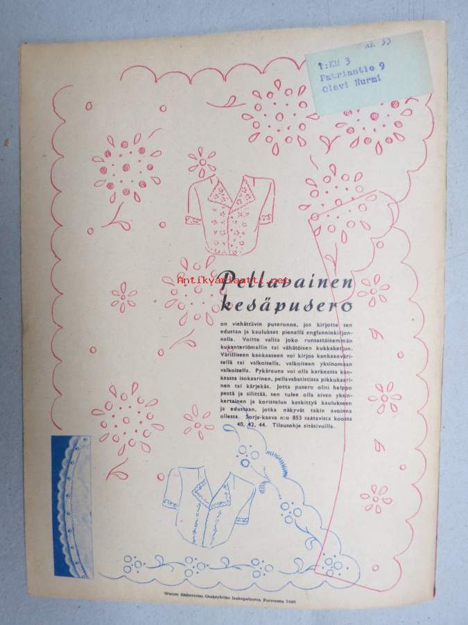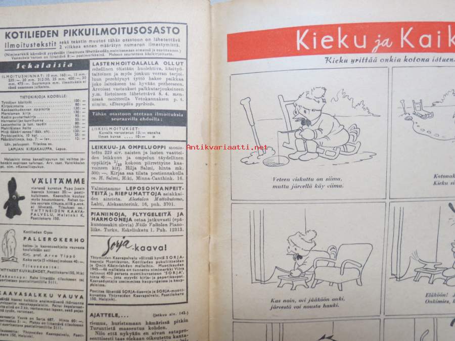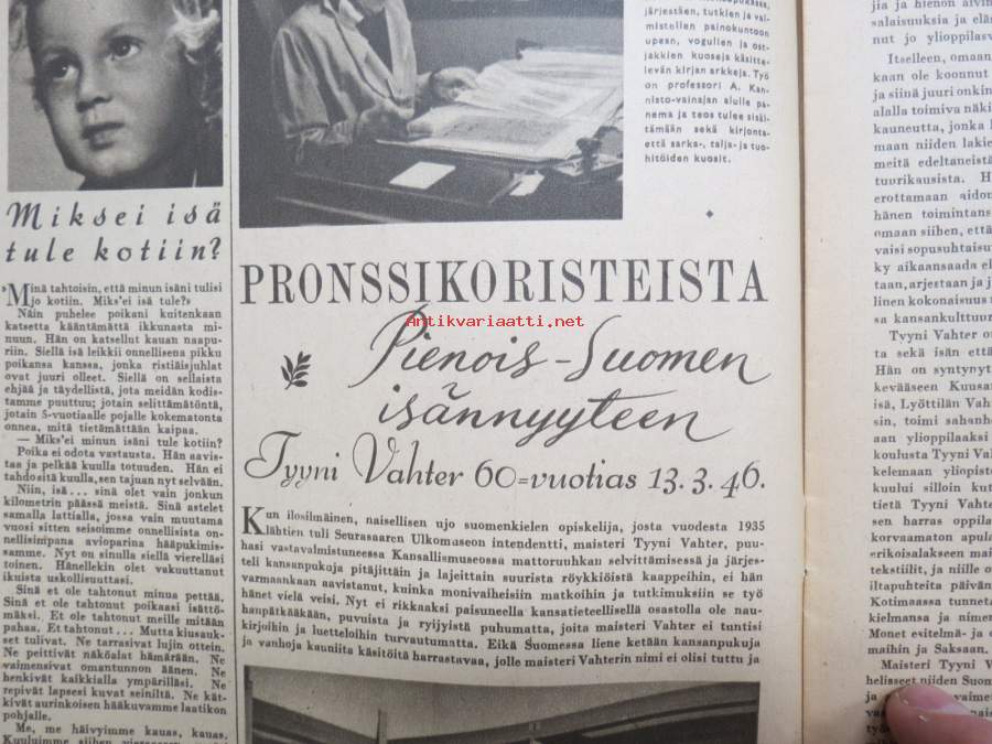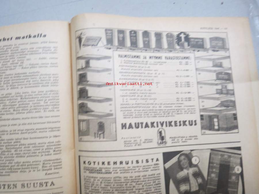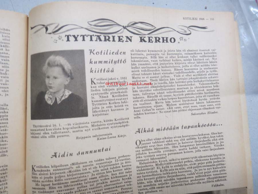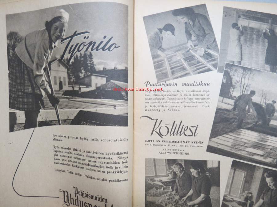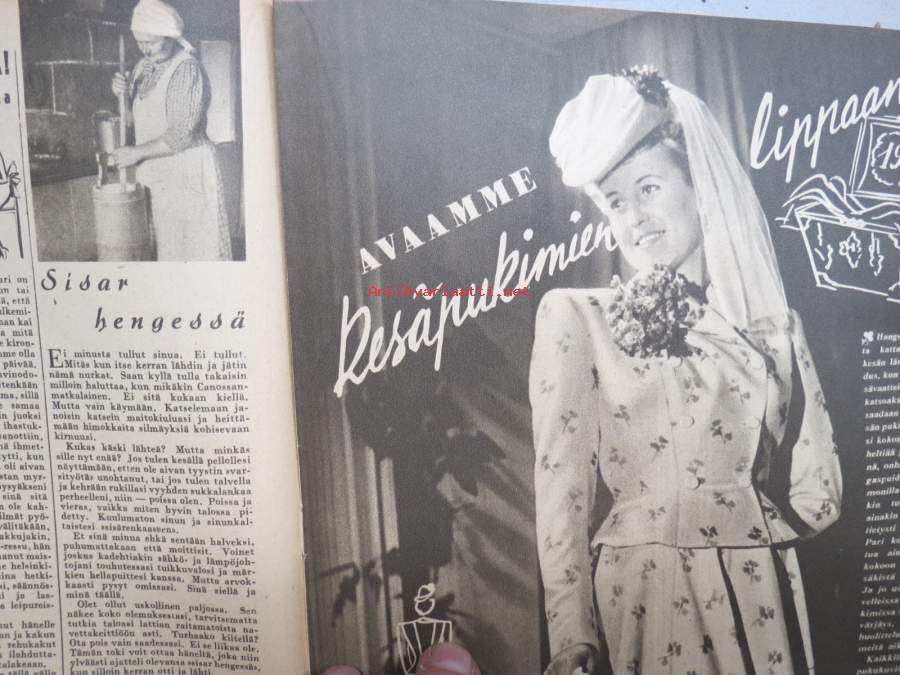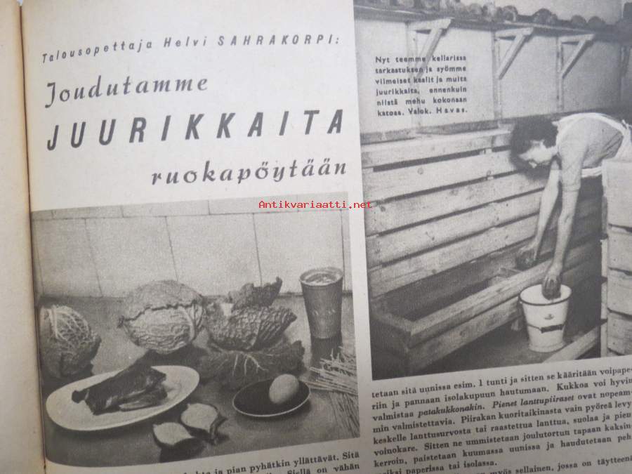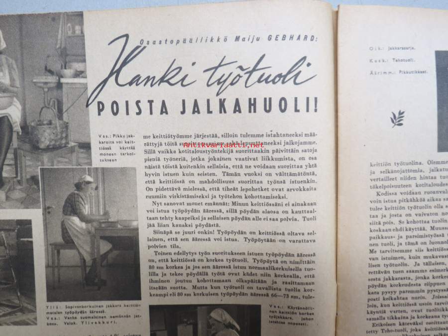 Kotiliesi 1946 nr 6, 15.3.1946, Suomalaisten Marianpäivä, Työtuolimallistoa, Tyyni Vahter 60 v. - Seurasaaren intendentti, Jälleen tavaroita!, Muotikuvia, Juurikkaat