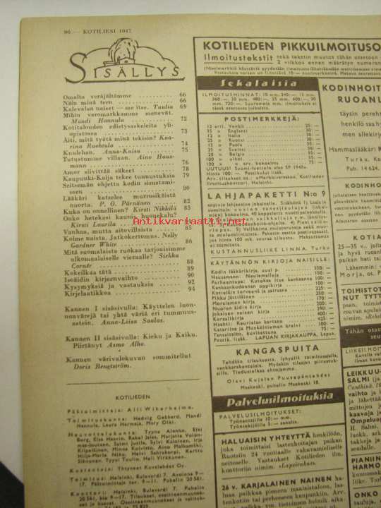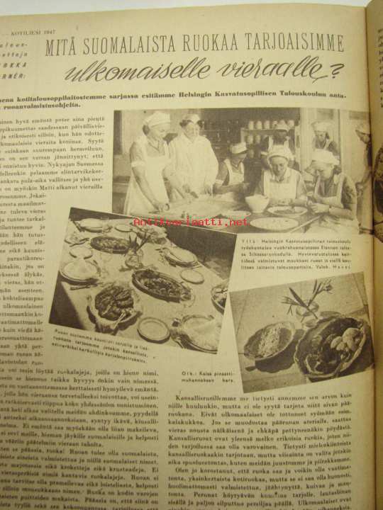 Kotiliesi 1947 nr 4. Artikkeli: mitä suomalaista ruokaa tarjoaisimme ulkomaiselle vieraalle, v 1947