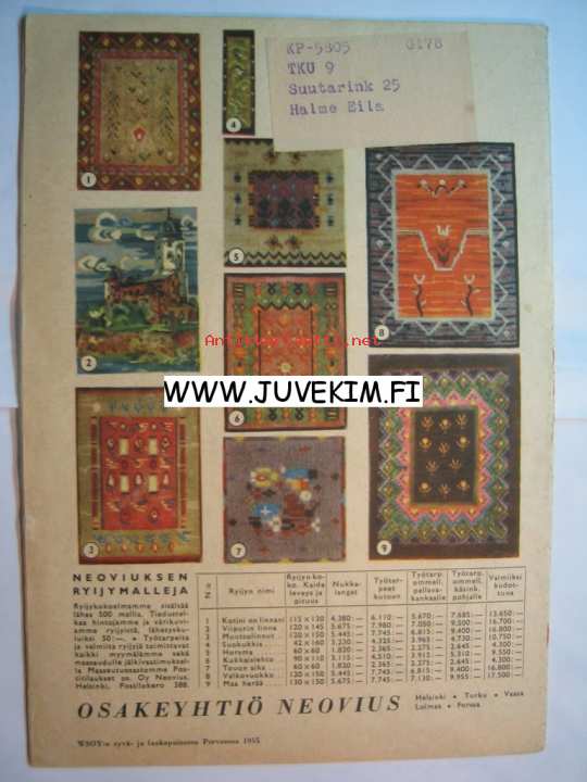 | Saatavilla | 1 kpl | | Julkaisuvuosi | 1955 | | Kunto | K3 | | Sidonta/painoasu | Lehti | | Kielet | Suomi |