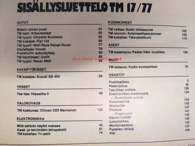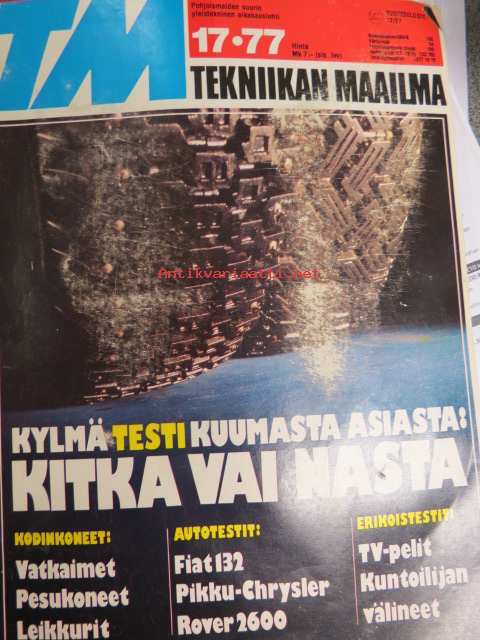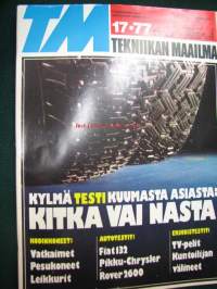 Tekniikan Maailma 1977 nr 17 TM testaa 1977: Fiat 132, Rover 2600, Pikku-Chrysler sekä vertaa kitka- ja nastarenkaita. Vuoden 1977 TV -pelit ja kuntoilijan