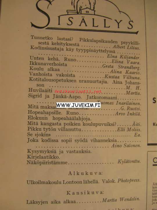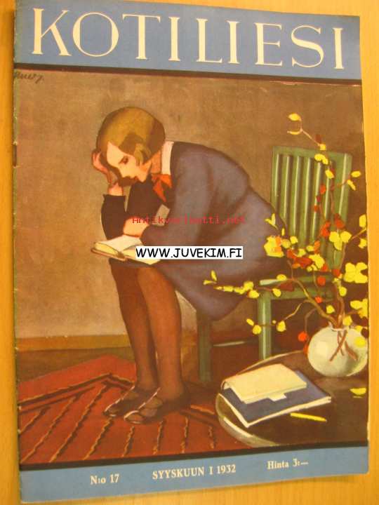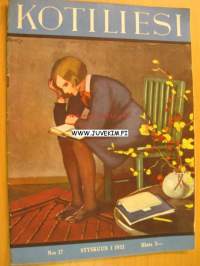 Kotiliesi 1932 nr 17 (kansi Martta Wendelin ) Syyskuu 1932. Artikkeli ja kuvia pohjoismaisista rakennuspäivistä : Alvar Aallon tuolimalli "pehmeä puutuoli".