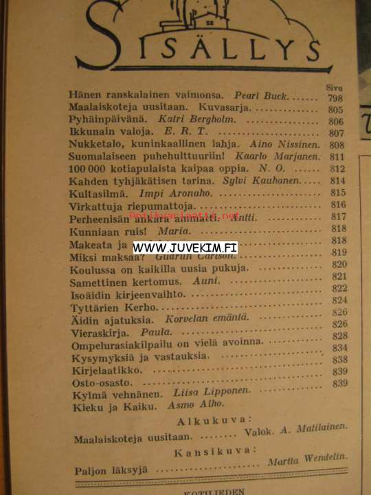 Kotiliesi 1936 nr 21 kansi Martta Wendelin, Englannin leskikuningattaren kuninkaallinen nukketalo - nukketalon historiaa, kahden tyhjäkätisen tarina - Käkisalmen Ala-Puustin Hovi-Kovero (Edla ja Juho Kovero), koulussa on kaikilla uusia pukuja