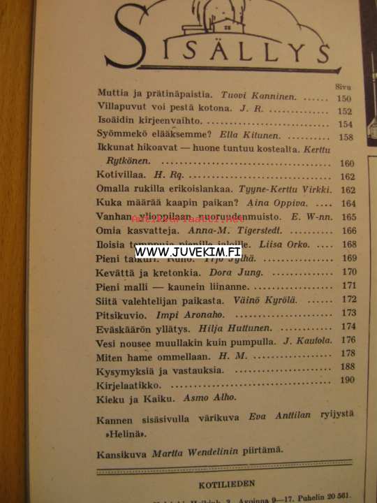 Kotiliesi 1938 nr 5 maaliskuu kansi Martta Wendelin (kansikuvassa kudotaan mattoa) Hieno, värillinen Kieku ja Kaiku -sarjakuva. Aurora Karamzine.