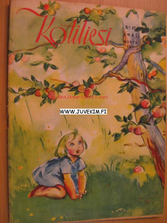 Kotiliesi 1947 nr 17 kansi Martta Wendelin, kotihartaus - kumpuavan siunauksen lähde, arkkitehti emännän apulaisena, rehtori-isä on isoveli koulussa ja kotonakin Martti Ruutu (Helsinki), etsitkö elämää maatalouden piirissä?, rippikoululeiri, ASKO Anita - Mirja - Tarina - Kaisa -huonekalut takakansimainos, ym.