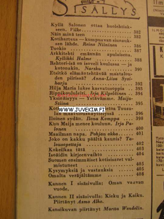 Kotiliesi 1947 nr 17 kansi Martta Wendelin, kotihartaus - kumpuavan siunauksen lähde, arkkitehti emännän apulaisena